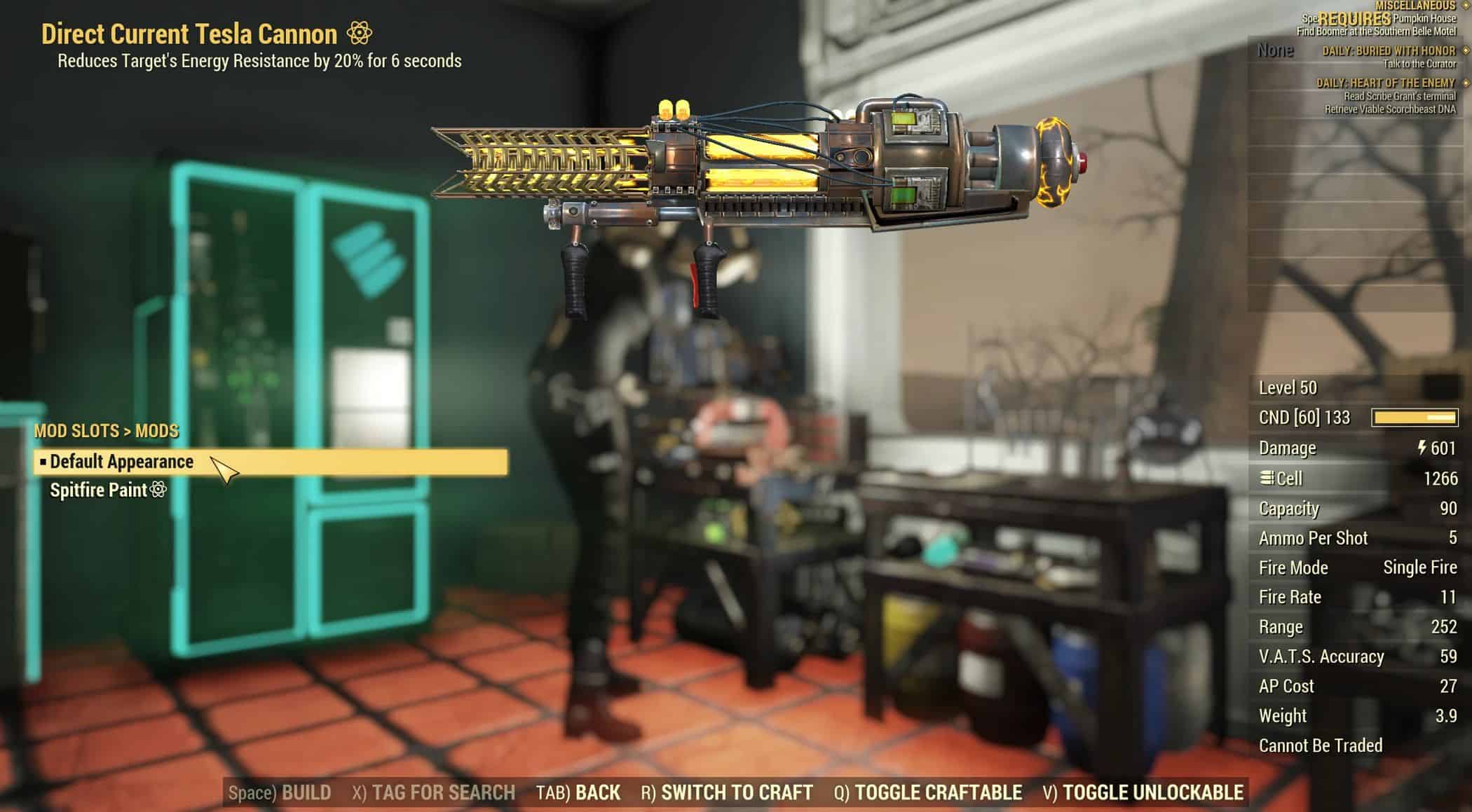 Brings back Tesla Cannon “Beaton prototype” model from Fallout New Vegas.