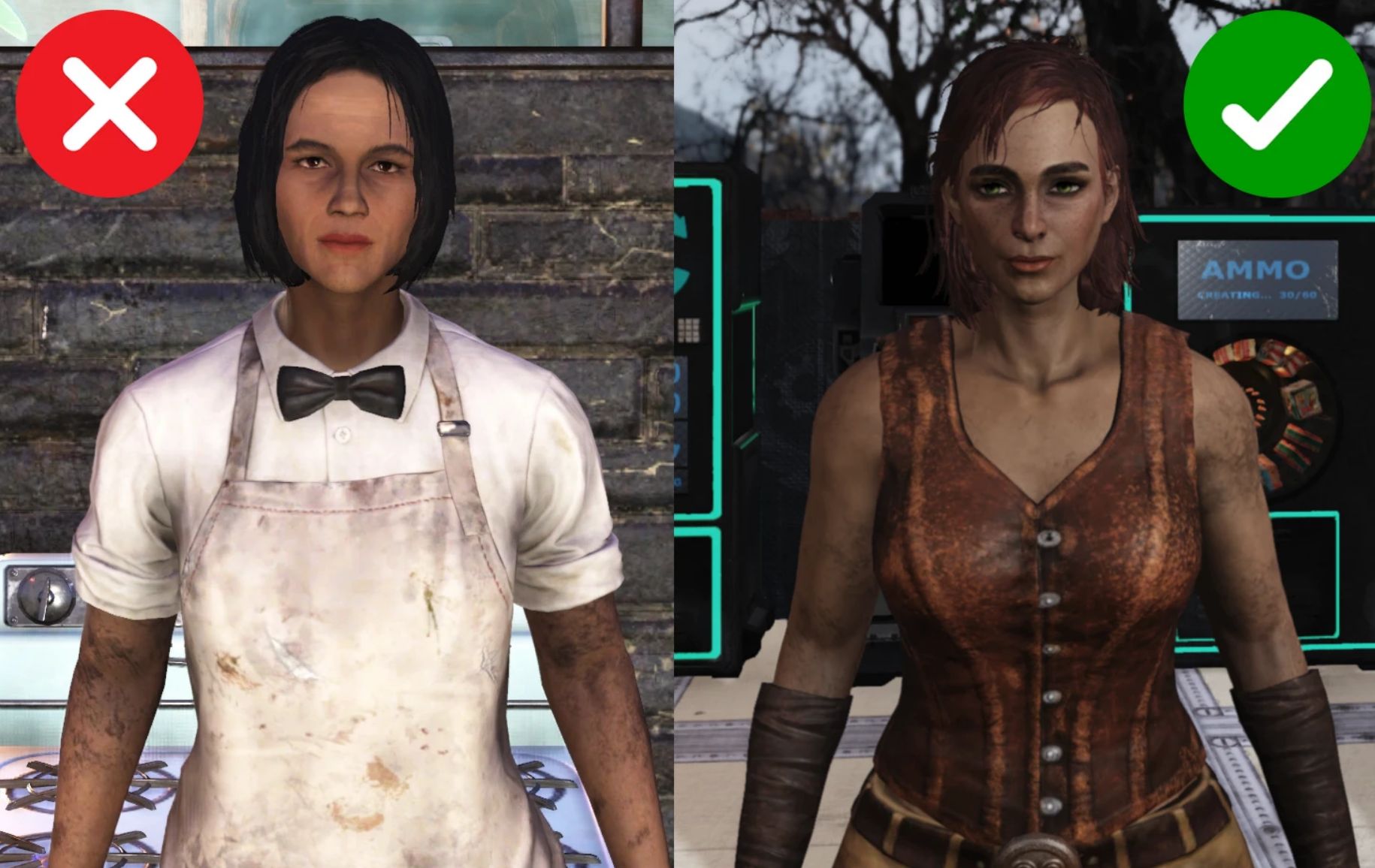 * Some of face and body features (body proportions, face parts type, scars etc.) are controlled by main game files and cannot be changed, so final result isn’t perfect recreation of applied face.